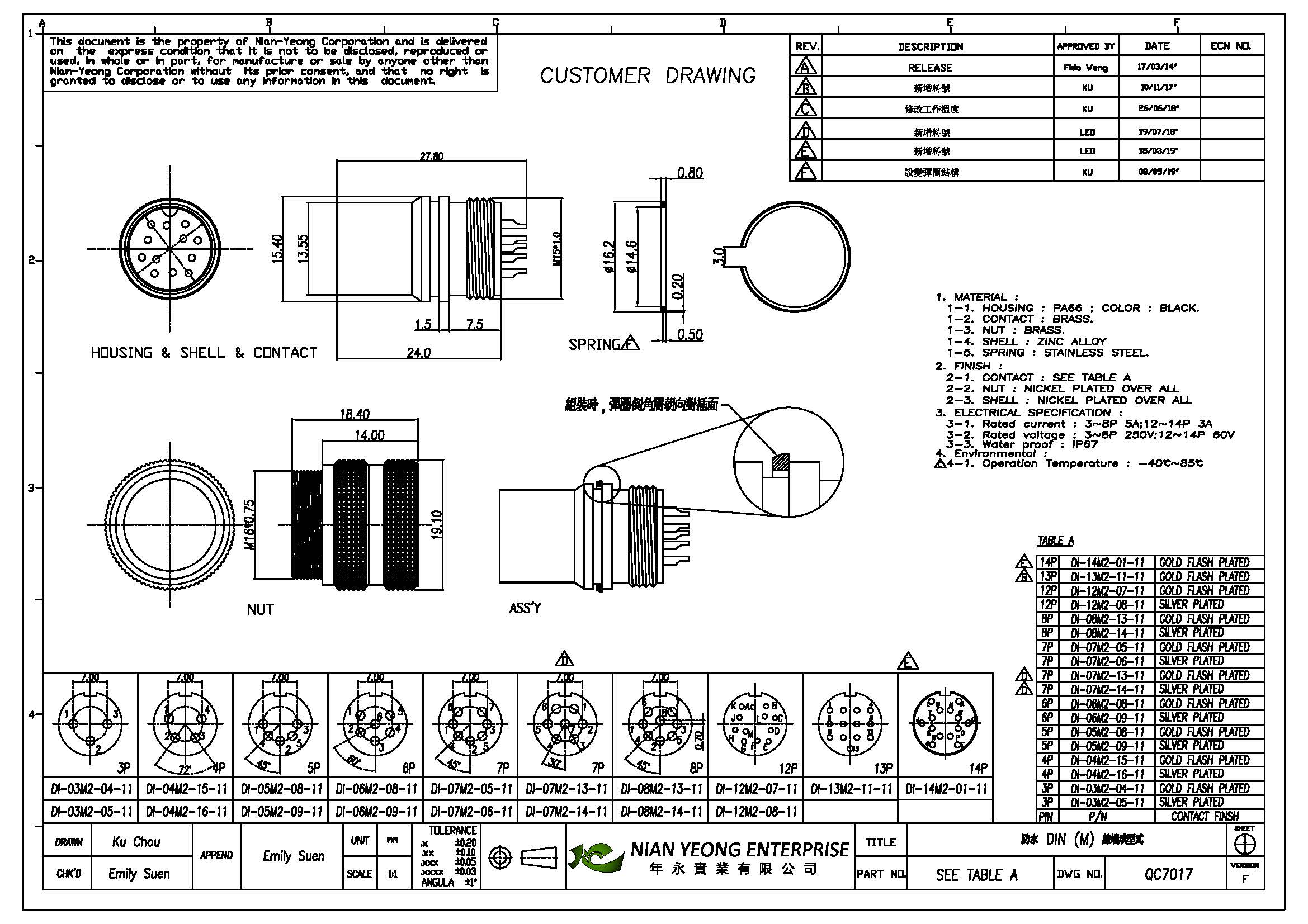 DIN M16 公頭 7PIN 線端焊線式防水連接器(07-A)/連接器