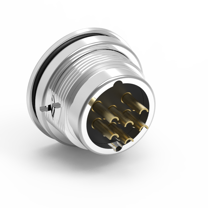 DIN M16 母頭 6PIN 後鎖焊線式防水連接器(Lock:M18*0.75)/連接器
