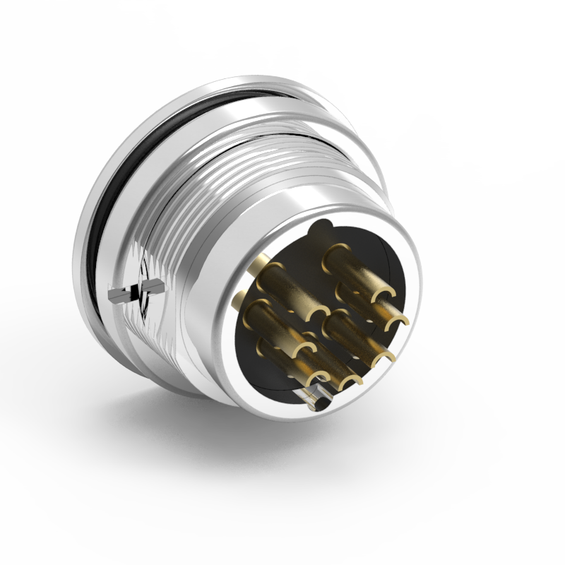 DIN M16 母頭 7PIN 後鎖焊線式防水連接器(07-B)(Lock:M18*0.75)/連接器