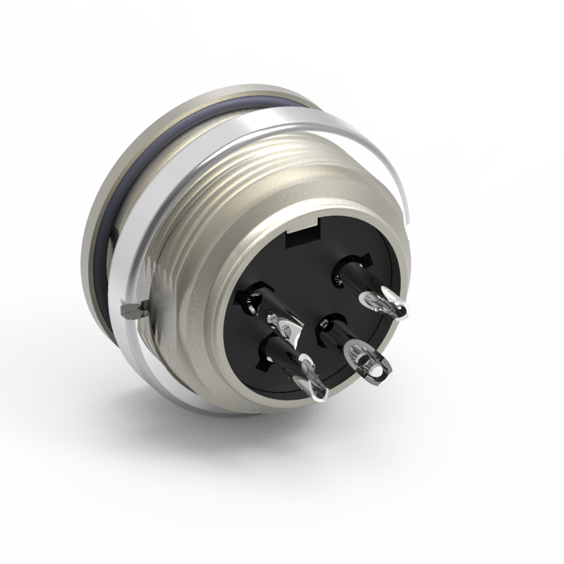 DIN M16 母頭 4PIN 後鎖焊線式防水連接器(Lock:M18*0.75)/連接器