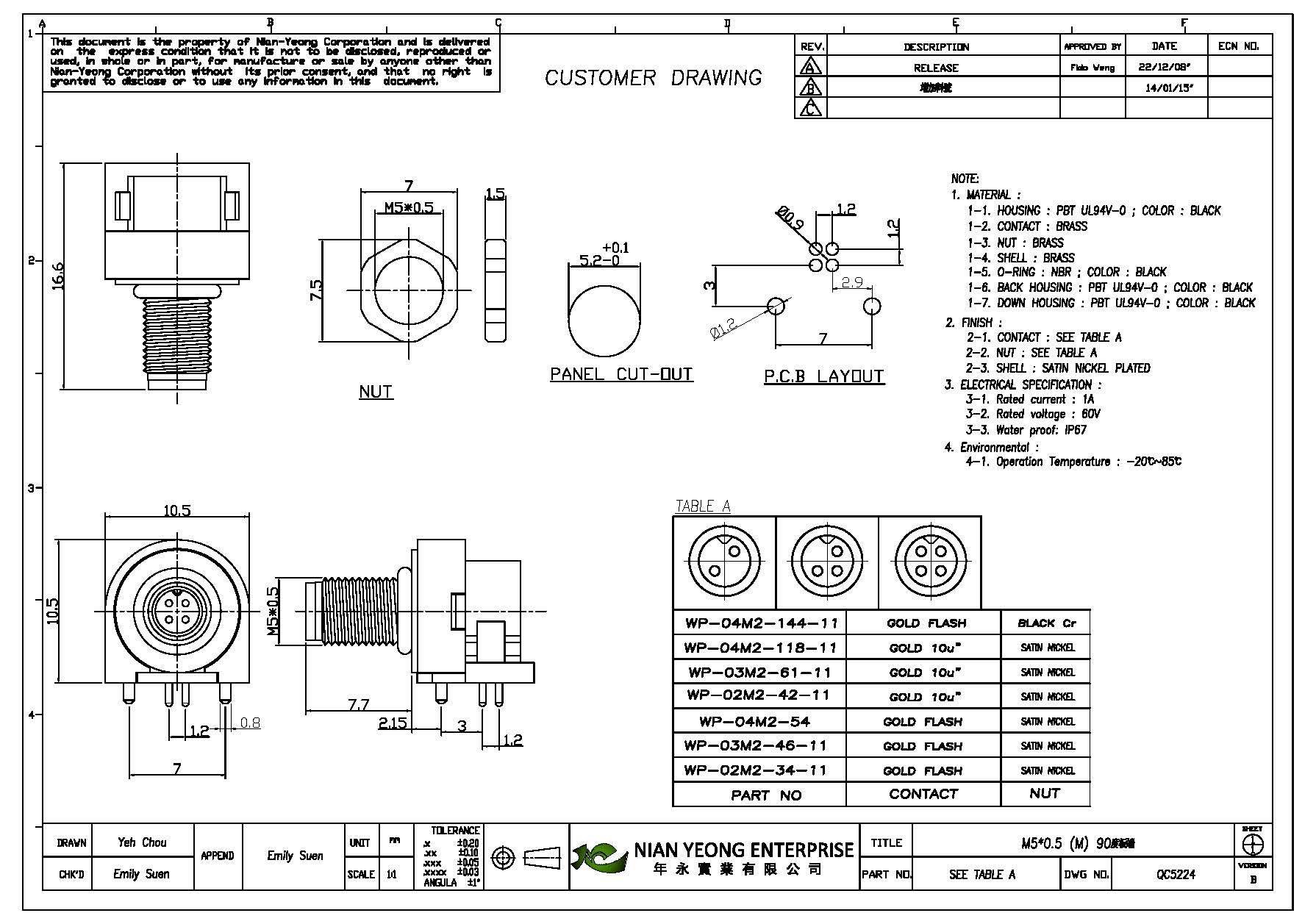 M5 公頭 4PIN 前鎖90°插板式防水連接器(Lock:M5*0.5)/連接器