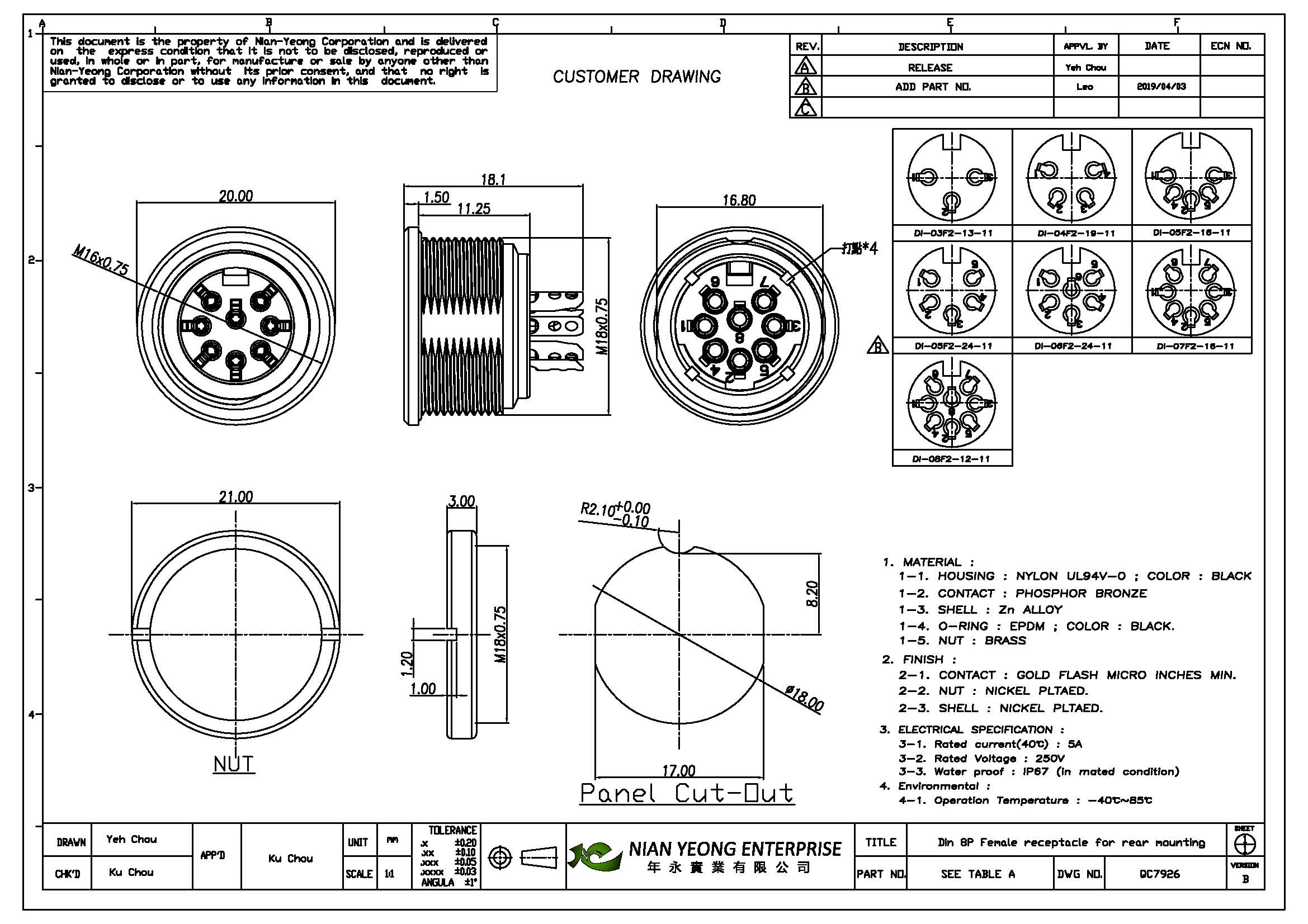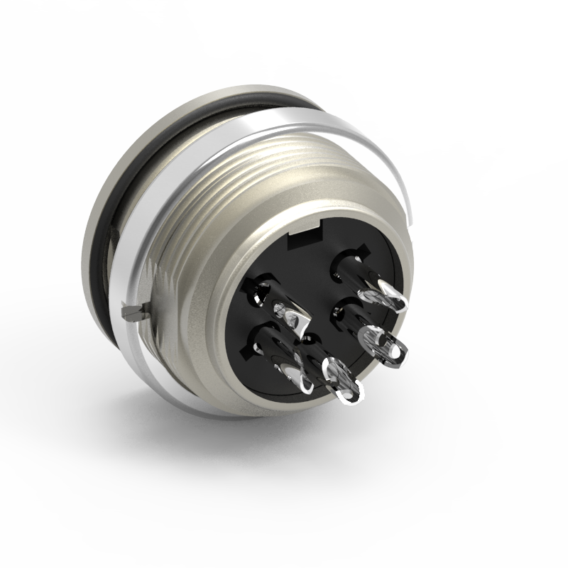 DIN M16 母頭 5PIN 後鎖焊線式防水連接器(05-A)(Lock:M18*0.75)/連接器