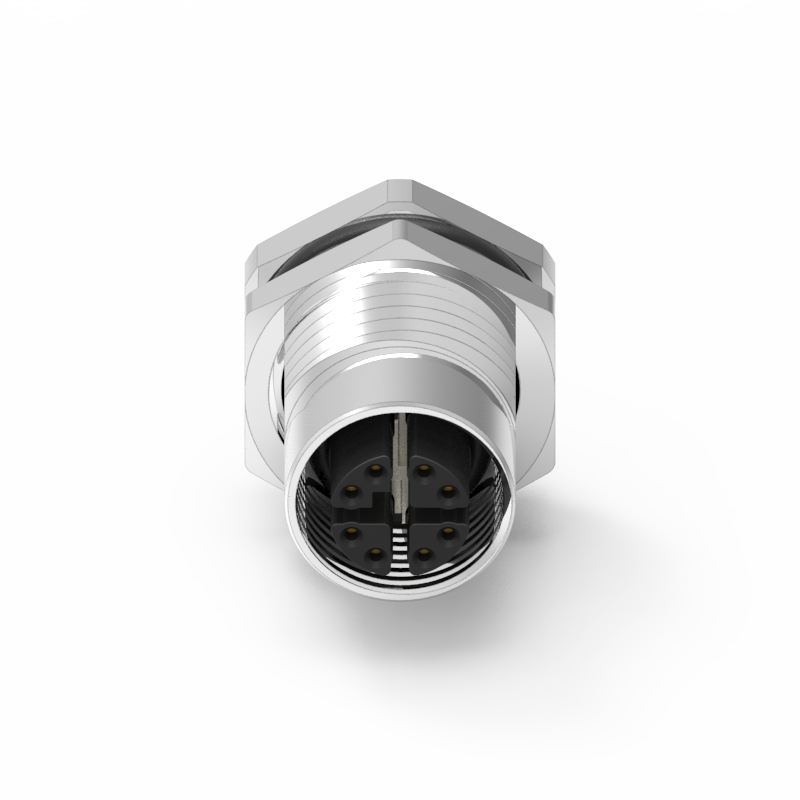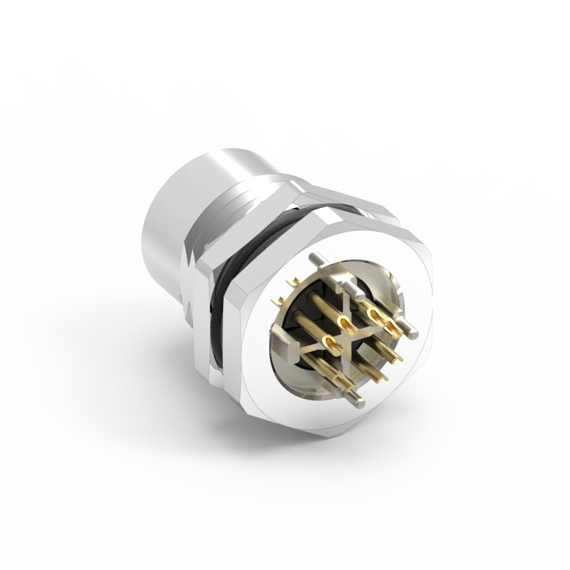 M12 母頭 8PIN X-Coded 前鎖焊線式防水連接器(Lock:PG9)/連接器
