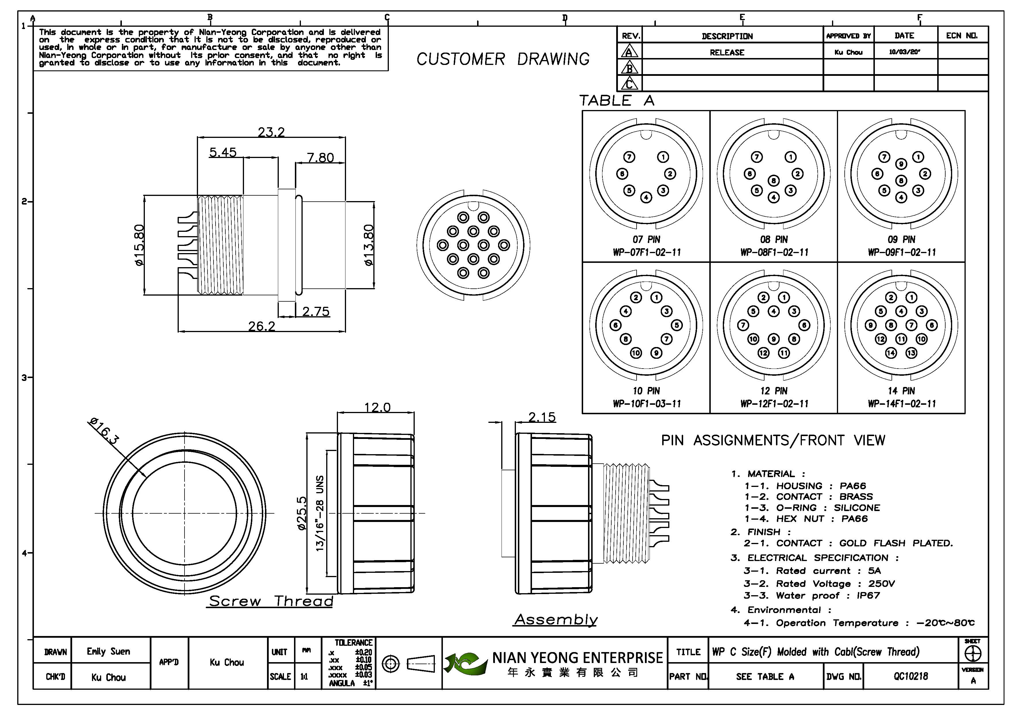 C Size (母身/母針) 9PIN 線端焊線式防水連接器(螺牙式)/連接器