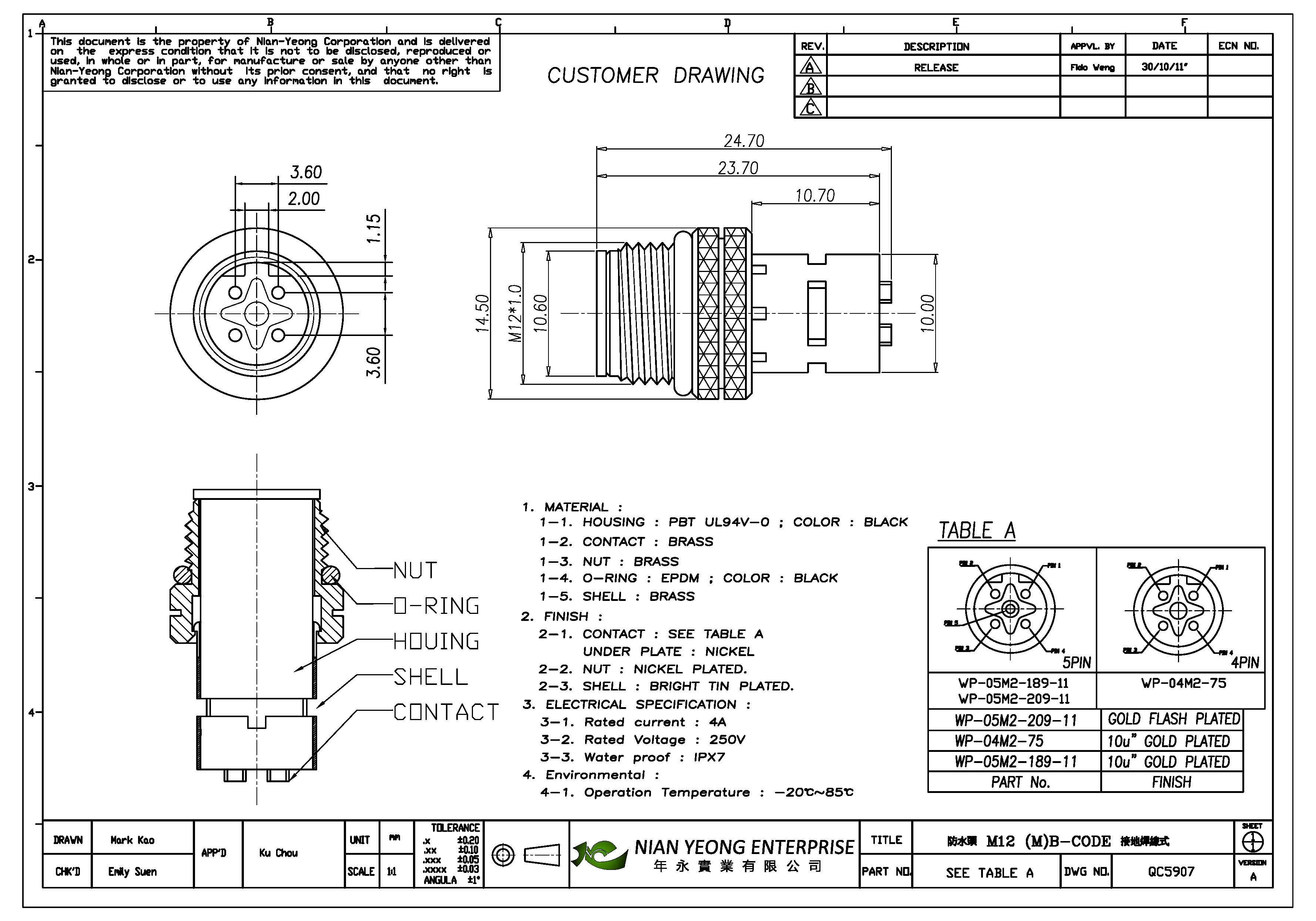 M12 公頭 5PIN B-Coded 線端焊線式防水連接器(帶接地)/連接器
