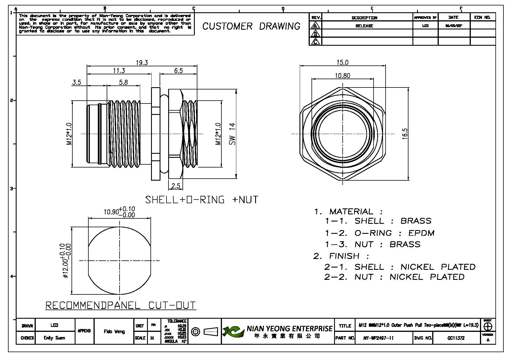 M12 公頭兩件式後鎖推拉式外部鎖定外殼(Lock:M12*1.0)