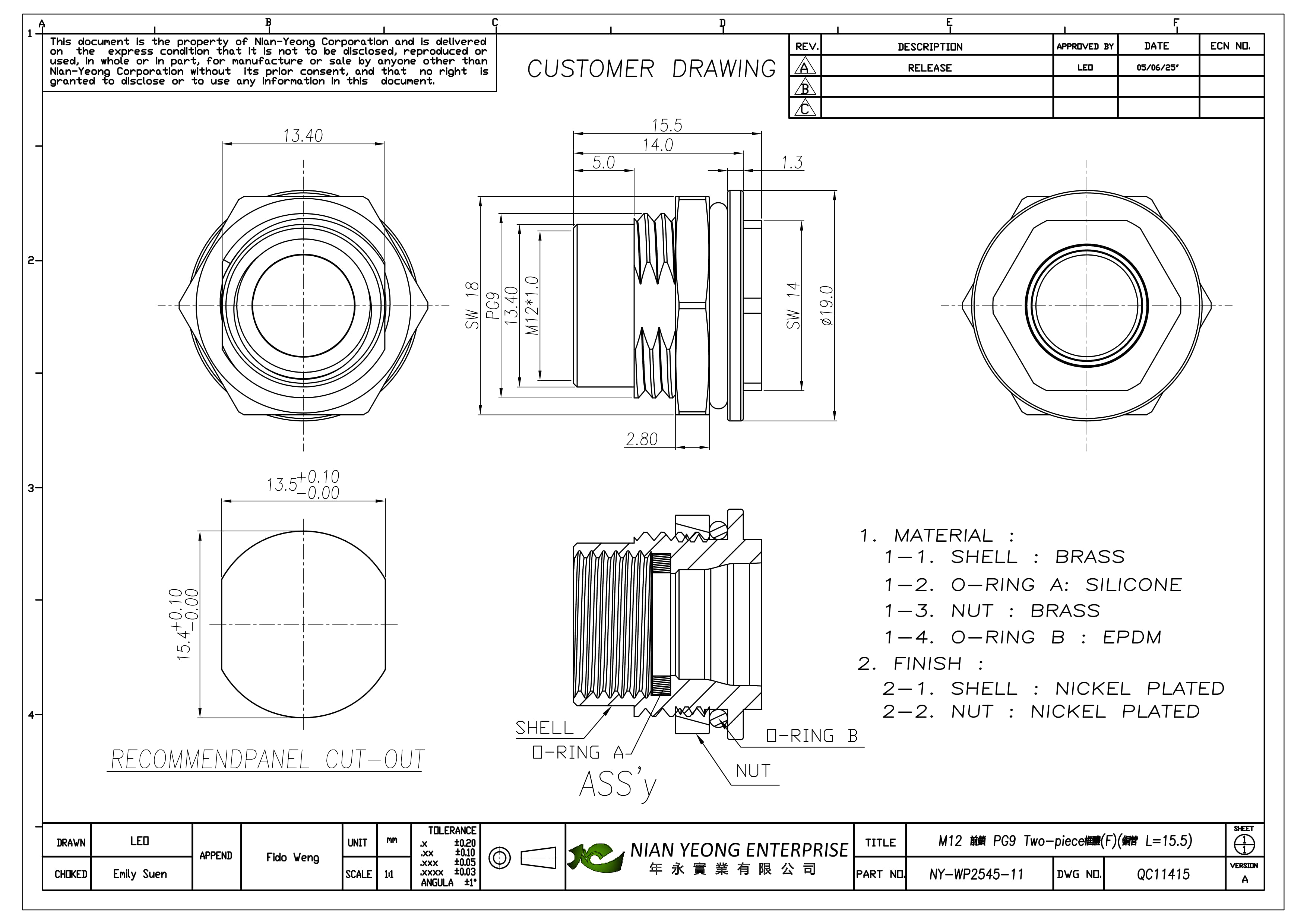 M12 母頭兩件式前鎖螺絲鎖定外殼(Lock:PG9)/連接器