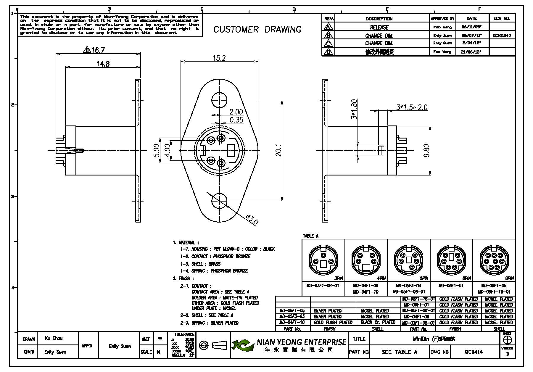 Mini DIN 母頭 5PIN 雙耳鎖板式連接器
